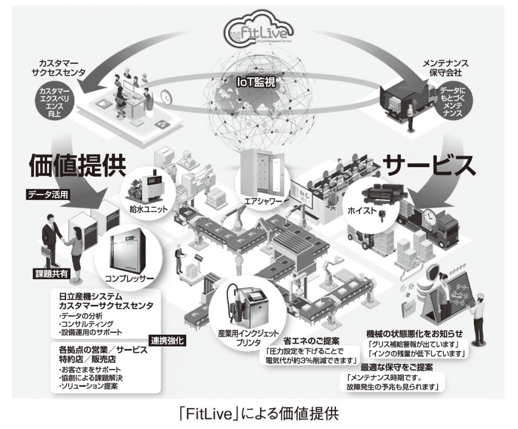 FitLiveは17年にサービス提供を開始し、21年には稼働レポート配信などデータ利活用型サービスを拡充した。24年には接続台数2万5000台を突破した(既設機の改造による接続を含む)。今後はAI(人工知能)分析による最適提案や予兆診断の領域へ発展し、蓄積データを顧客価値として還元する取り組みも進めていく。