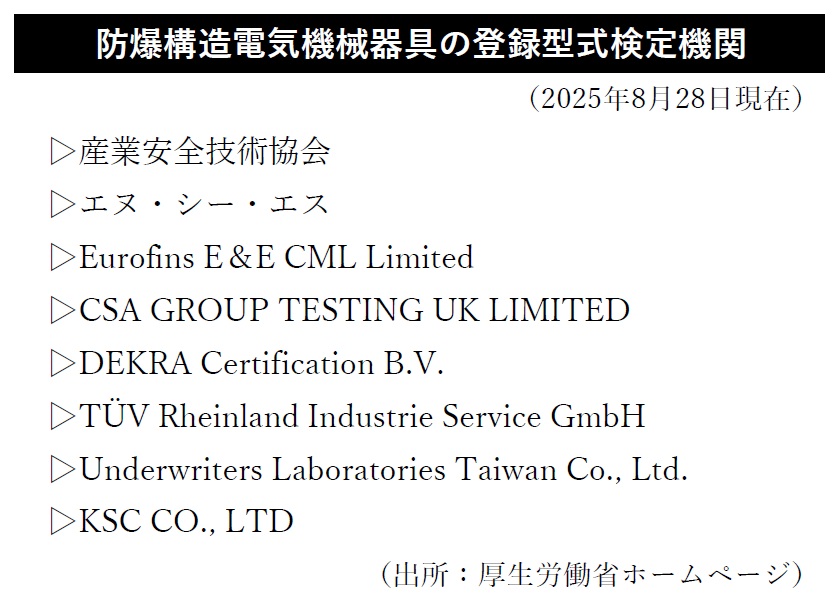 日本電気制御技術工業会(NECA)では防爆委員会を設置し、標準化の推進や防爆安全ガイドブックの作成、「SBA—Ex資格認証制度」などを行っている。