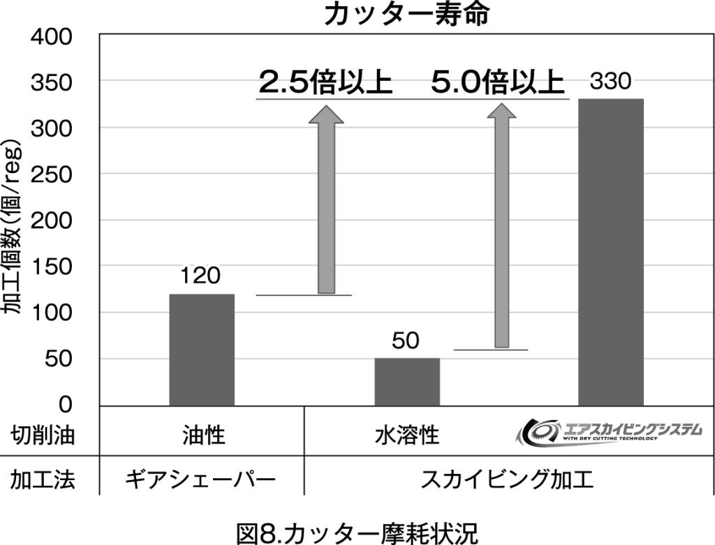 これまでギアスカイビングの課題とされてきたカッター寿命、ランニングコストは同技術により大幅な改善が可能である。