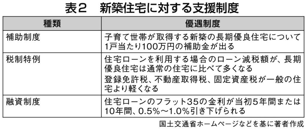 その上で、長期優良住宅であれば、消費者はさまざまな優遇策を享受できる(表2)。