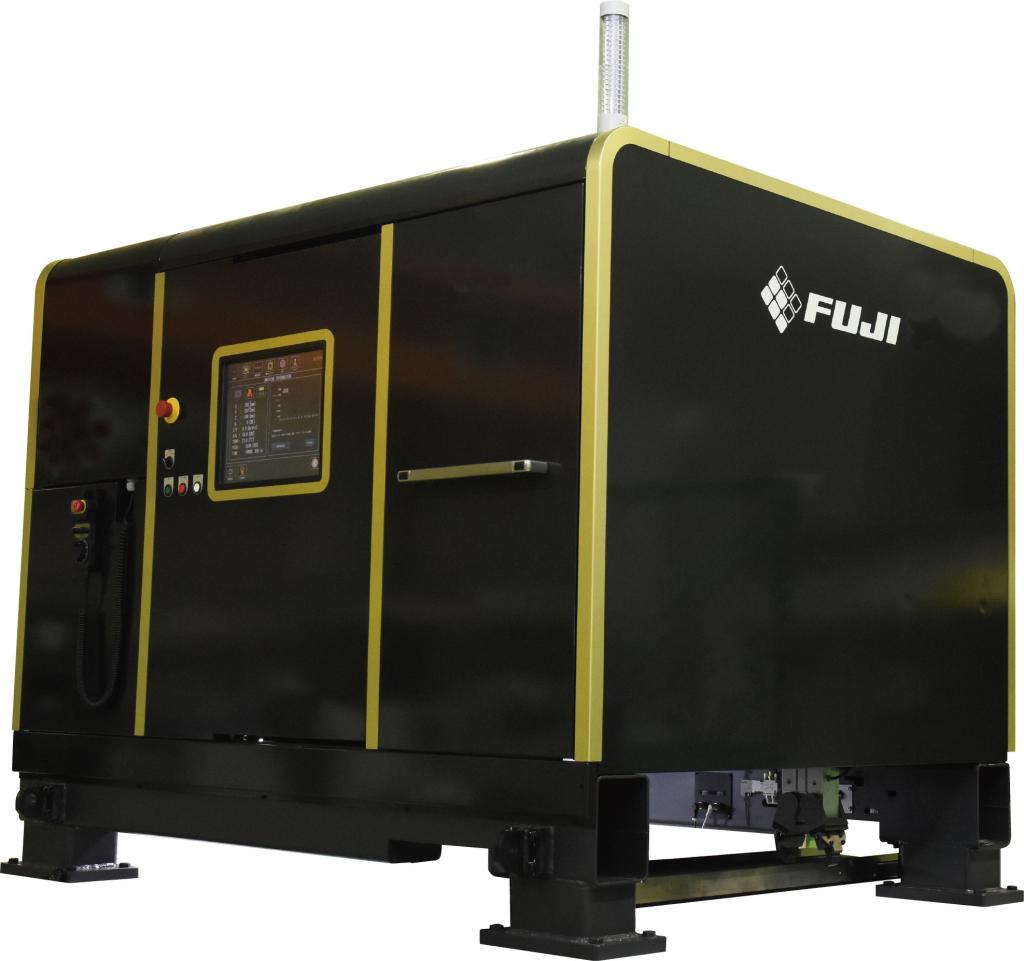 完全箱型ベッドと完全クイルスライド方式の高剛性主軸構造を採用し、ツインのパレットストッカーを持つ構成とした。新たな市場開拓と海外需要の拡大に向けて、特徴的な板金加工の開閉式安全カバーを採用。剛性を確保するためリブを設けヒンジ構造で取り付け方法を工夫した。さらにシグナルラインライトを内蔵するなど新規性のあるデザインにこだわった。ただ、ツインのパレットストッカーのシンメトリックなマシン構成要素に対し、コンパクト化にこだわる変則的なカバー扉の採用は、トータルとしてバランス感に欠ける点が惜しまれる。