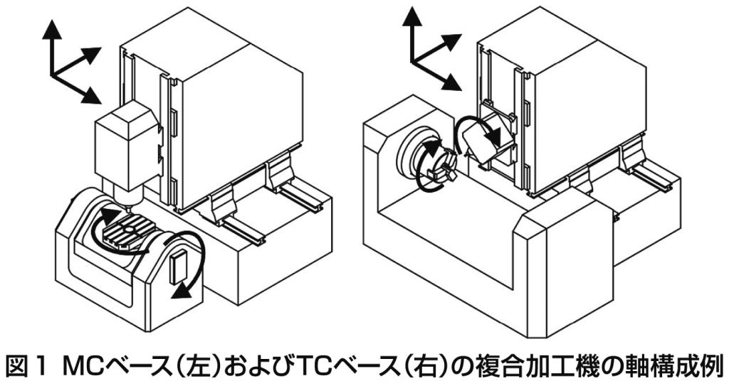 つまり、ターニングセンター(TC)とMCの両方の機能を備えた機械である。最近ではMCベースおよびTCベースの複合加工機が登場している(図1)。これらにより旋削とマシニング加工が1台で可能となるため、段取り時間を大幅に削減することが可能となっている。