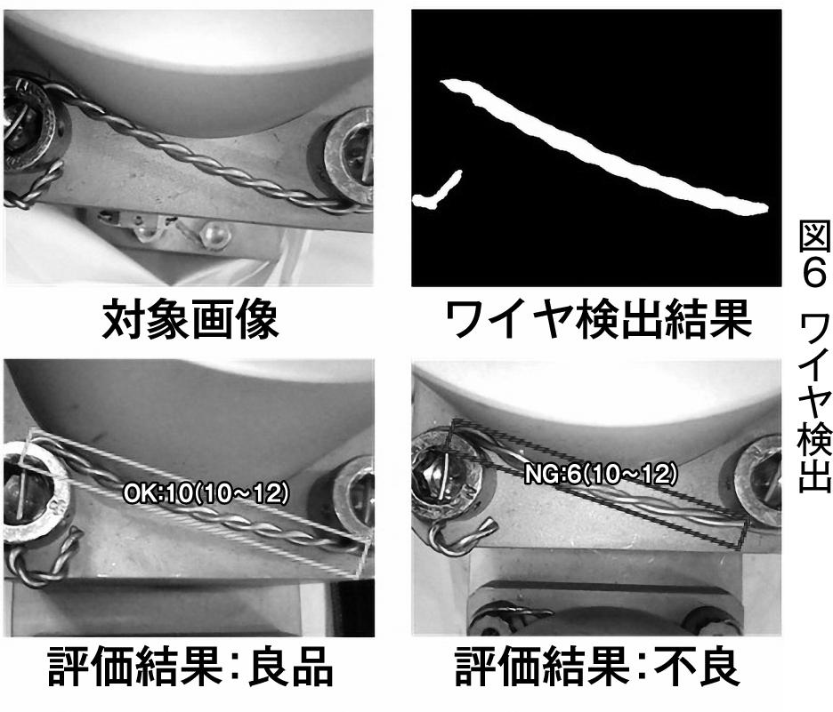 ワイヤ組み付け前についてはボルトおよび通し孔の検出を、ワイヤ組付け後についてはワイヤ組み付け状態の評価を、深層学習を用いて行った(図6)。