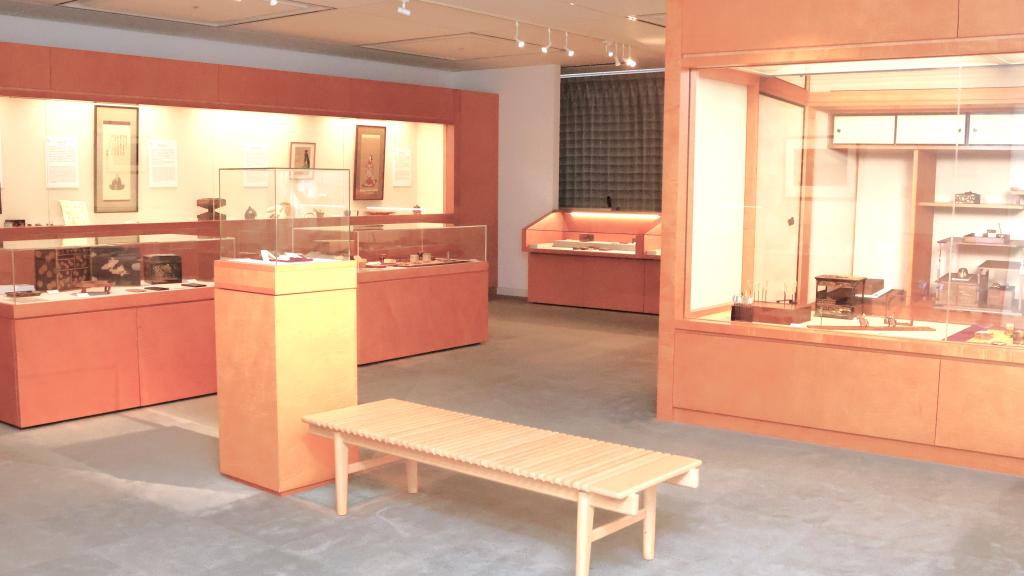 高砂香料工業本社内の受付フロアにあるギャラリー。香りに関する国内外の多様な時代の多彩なコレクション1037点を所蔵し、ごく一部を毎回企画展で紹介している。