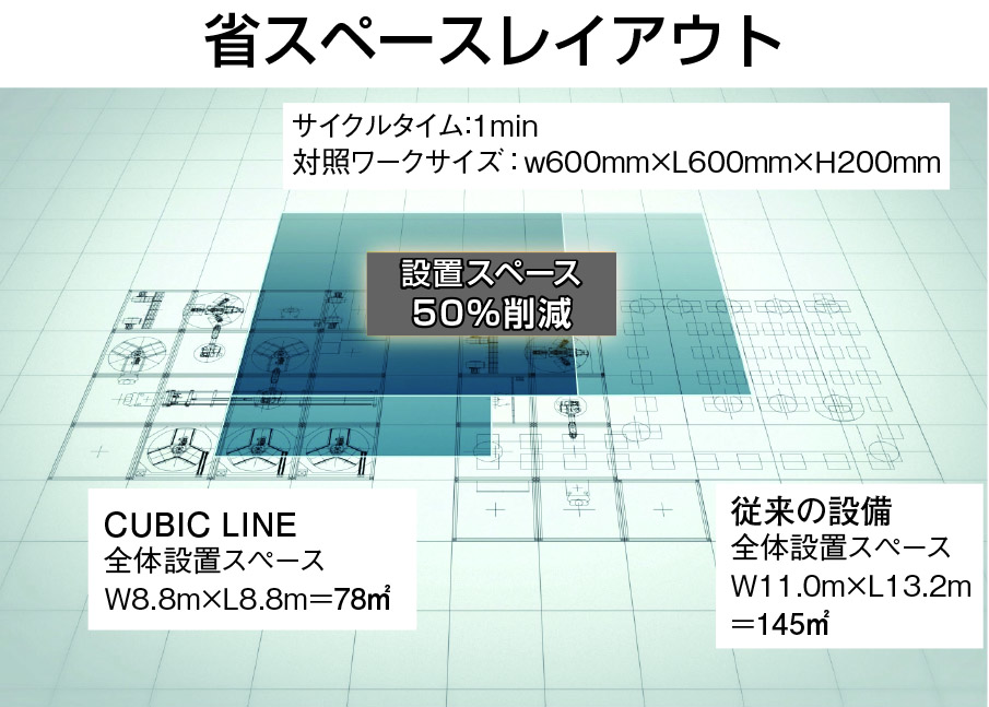 CUBICごとに仕様が確立されているため、金額や納期もすぐに算出でき、導入検討が大幅にスピードアップできる。また、出荷前に試運転が完了し、現地では設置後すぐに安定生産に入れるため、効率的に立ち上げられる。