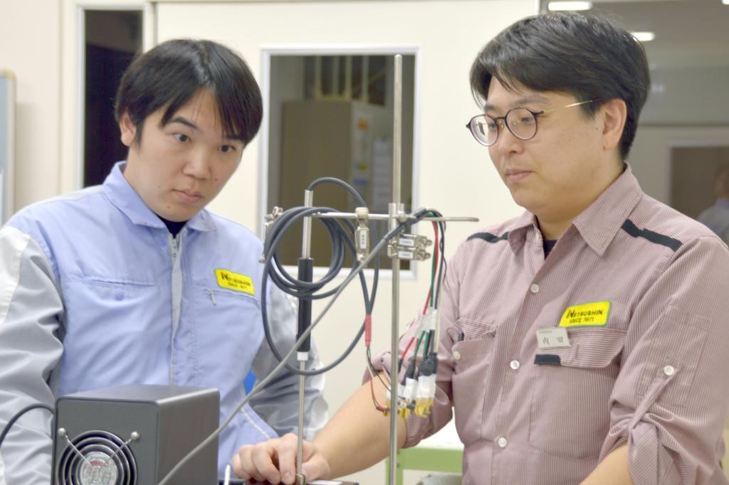 ネツシン(三芳町)の野沢俊策さん(左)と内田一眞さん(右)は、品質管理の業務を前任者からこの7月に引き継いだ。客先からの要求に全力で対応し、自社内の品質システム維持管理にも取り組む。「当社製品はハンドメイド。品質管理の視点から技能伝承をスムーズにできる仕組みを構築したい」と決意を語ってくれた。